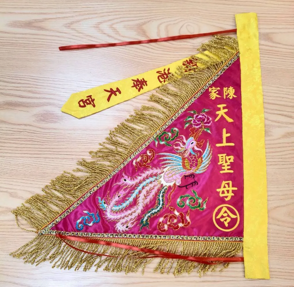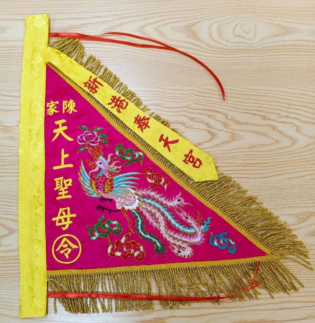 三角旗象徵著穩固與吉祥,希望這次的作品能為陳家帶來 家運昌隆、事事順心,並在重要場合中增添莊重與光彩。