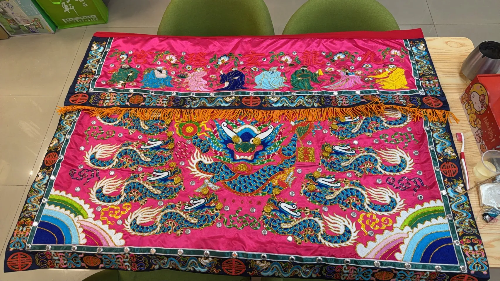 恭賀 九龍 玄瑤宮 訂製平繡九龍桌圍圓滿交付。