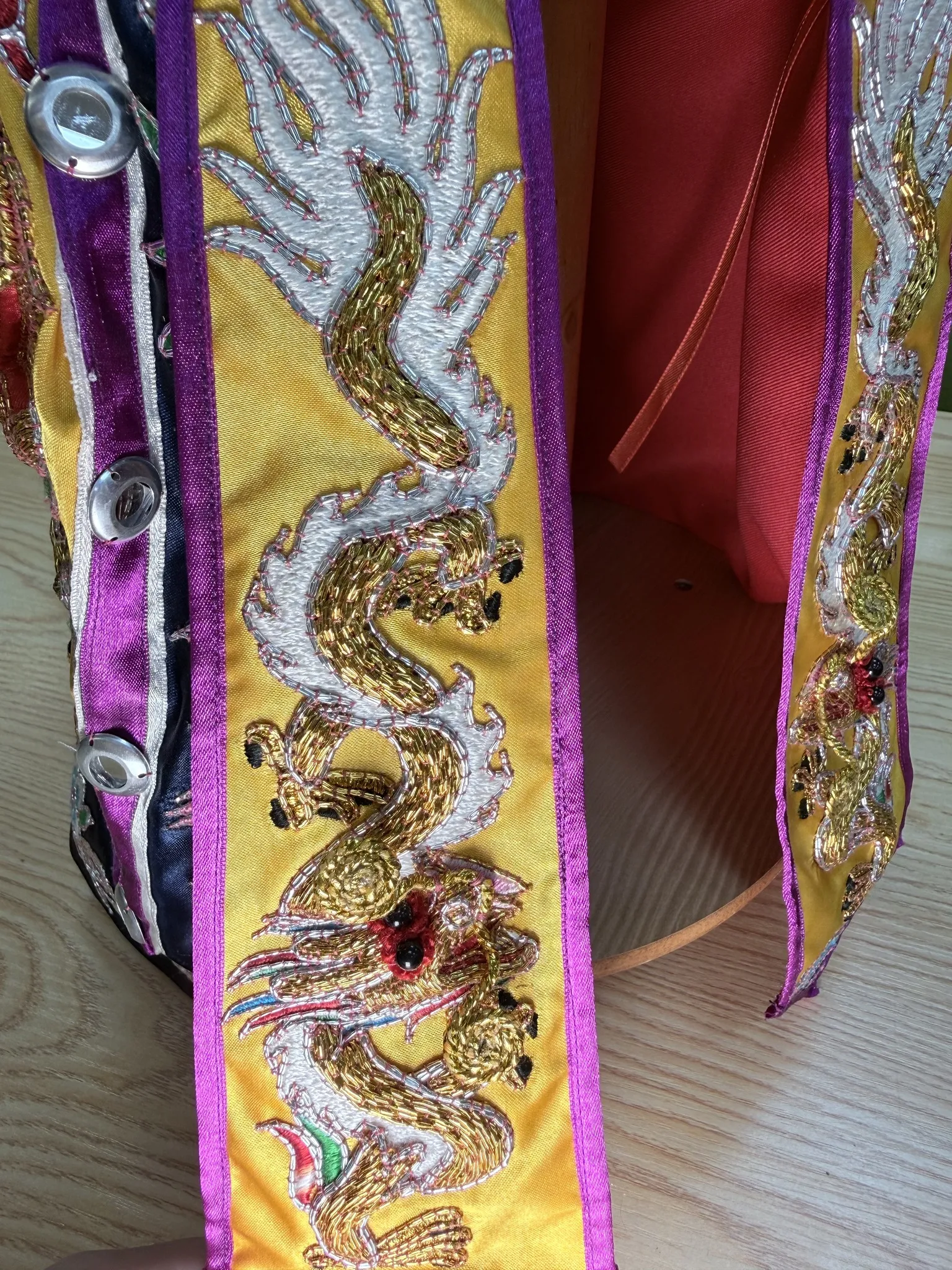 本套龍袍與奉帽採半手工製作,