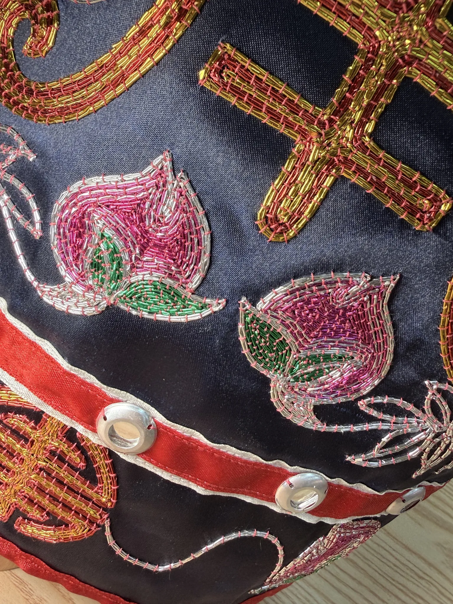 全手工深藍色壽衣(⼟地公) 招財鉅作
